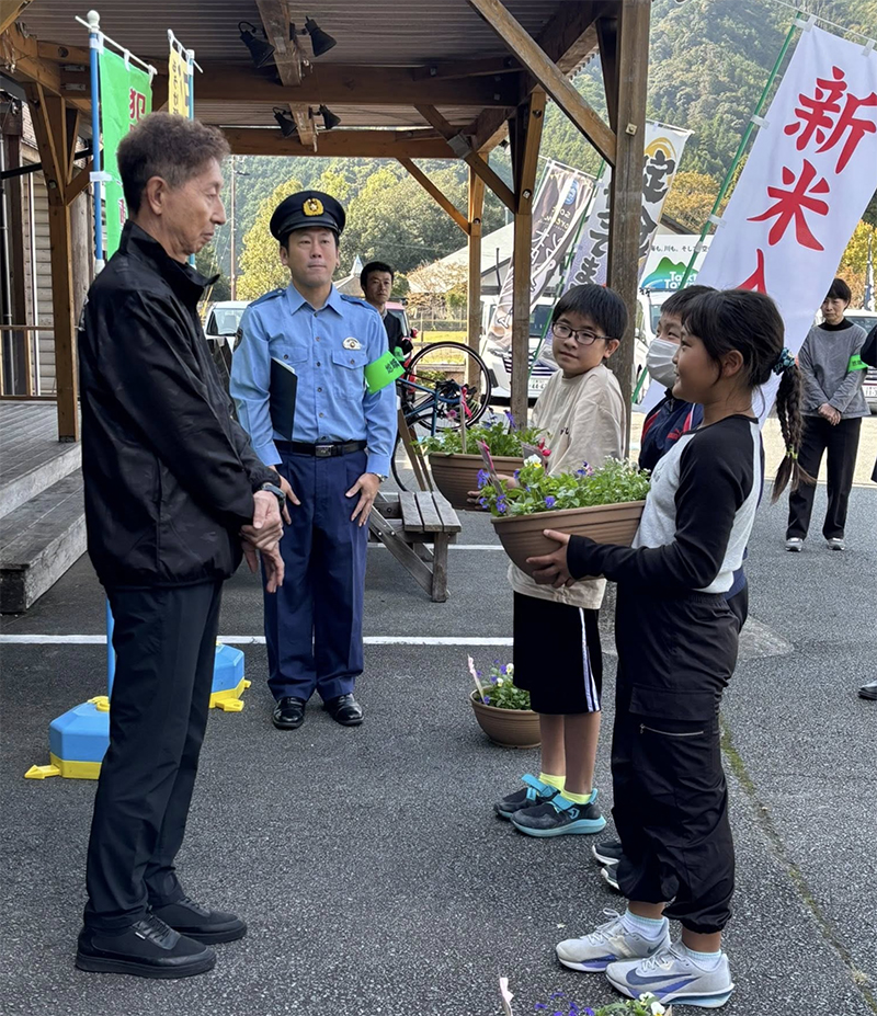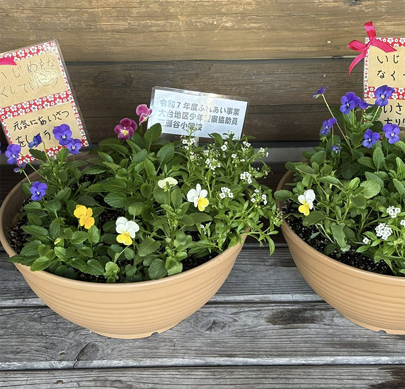協助員、三瀬谷小学校の児童から素敵な鉢植えの花