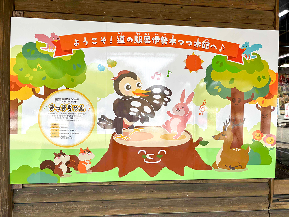 当館マスコットキャラクター「きっきちゃん」と森の動物たちが、楽しく過ごしている様子のイラストです✨