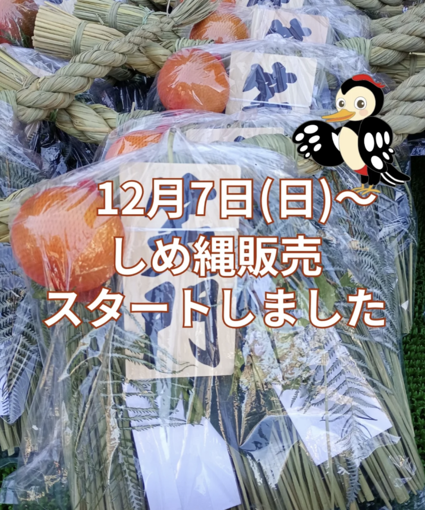 12月7日〜しめ縄の販売をスタートしました。玄関用の他、神棚用、五本足、つぼきも準備しました。しめ縄をお探しの方、ぜひお早めにご来店ください✨️