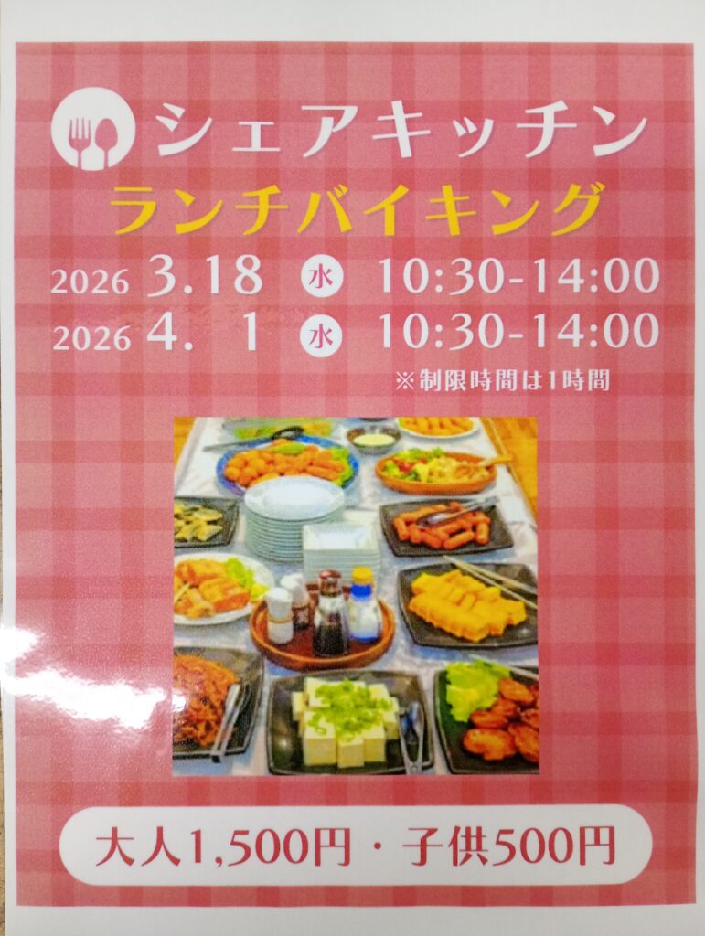 木つつ木茶屋は通常水曜日は定休日となっていますが、3月18日(水)、4月1日(水)はランチバイキングを開催します。